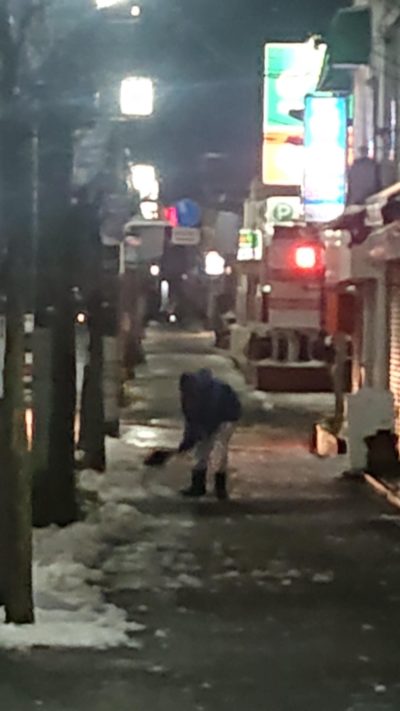 市議に初当選した28年前、雪かきを長時間始めた頃は、商店街などで雪かきをされる方は少なかったですが、呼びかけず、寡黙にやっていれば、雪かきを「誰かがやった」と知るだけでなく、行動に移す方もきっと現れるだろうと🌨毎回⛄行い、今では自分の所の前以外も行って下さる方が多くなりました。 (📷️雪かきされているのは『さいとう接骨院』さん)