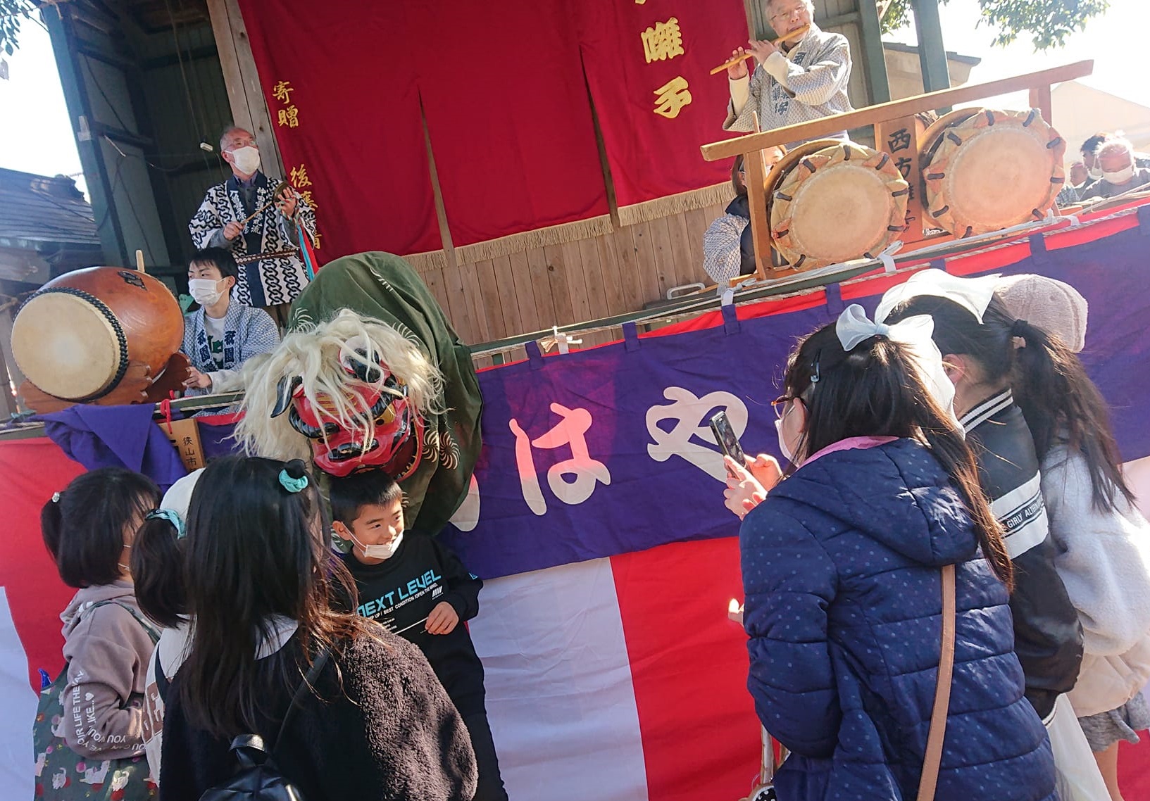 獅子舞に頭をパクッとしてもらって、お互いに写真を撮っている子ども達☺