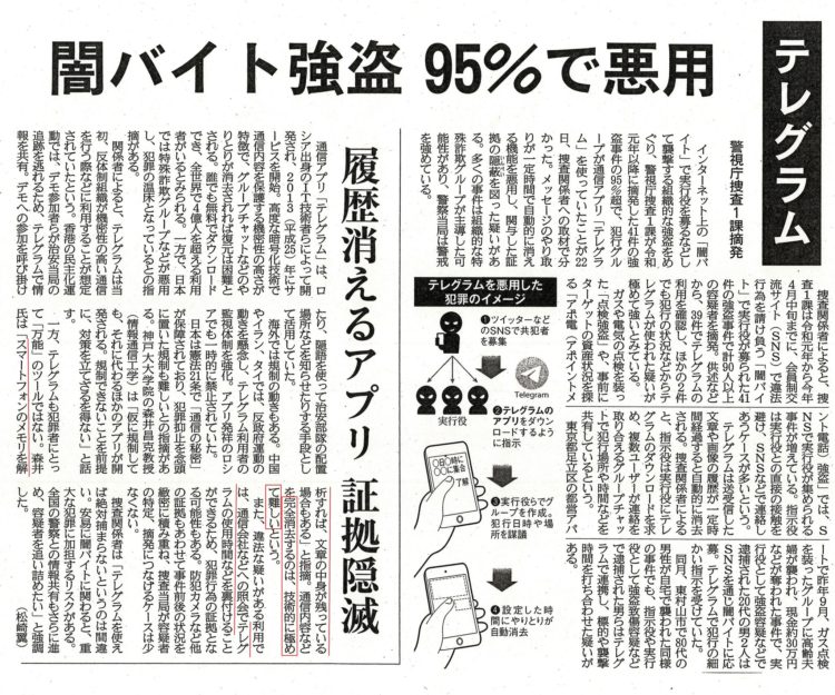 闇バイトへの誘い文句は「テレグラムは消せるから、証拠が残らず、たとえ捕まっても大丈夫」と言っているのでは?