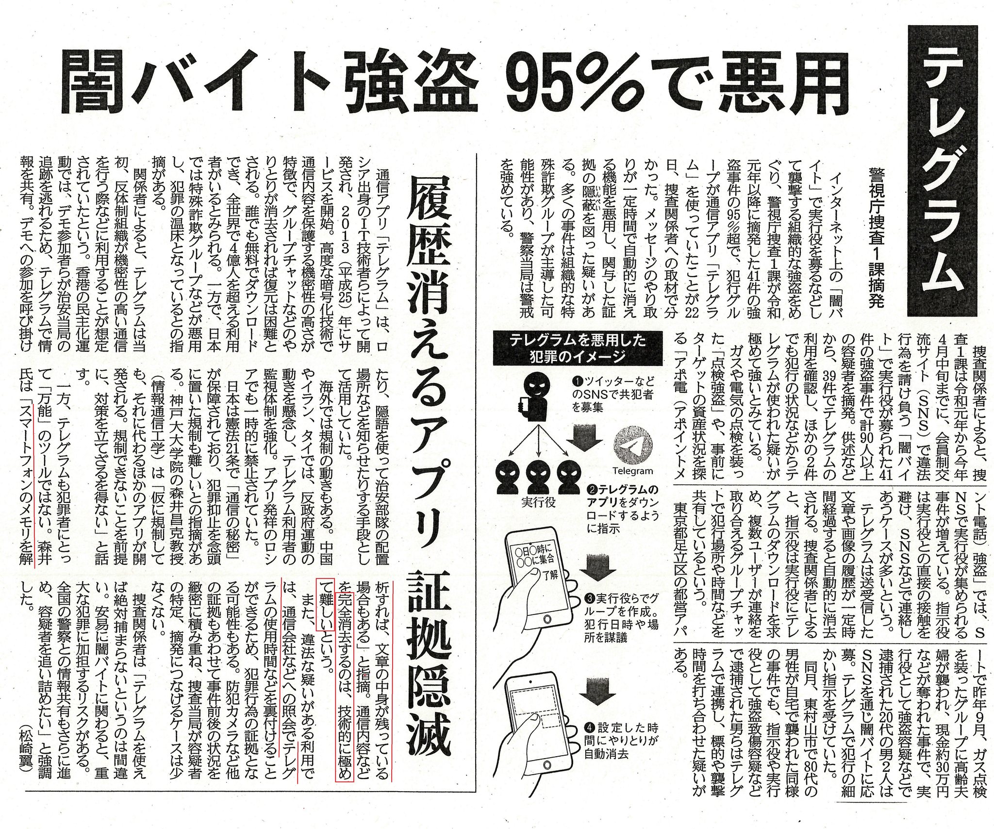 2年前の時点で、闇バイト・テレグラムの問題について言及。