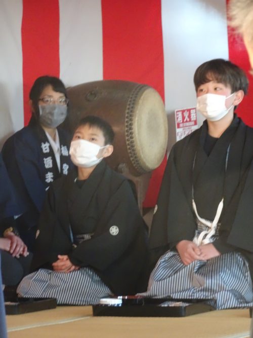 📷写真はママ・パパが甘酒を「お酒入ってないよ」と子どもに渡してるところ。