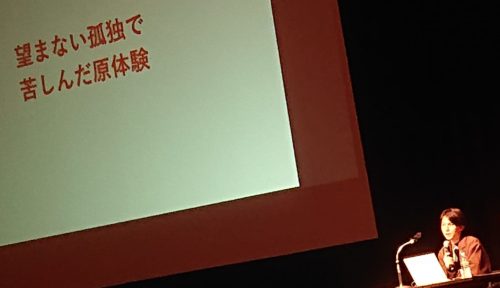 【原体験】を話す事が、私(中川)も世の中を動かす1番の力になると思っています。(以下、ご講演)「小学生の時、死にたいと思った。生きてる意味が無い」「ホームシックになる家が私には無かったので、ホームシックにはなりませんでした」「支援を受ける側に自分がいるという意識はみじんも無かった」「自分に何が出来るか、考えた事は無かった。『なんでこんなに苦しいんだろう』という事ばかりを考えていた」。