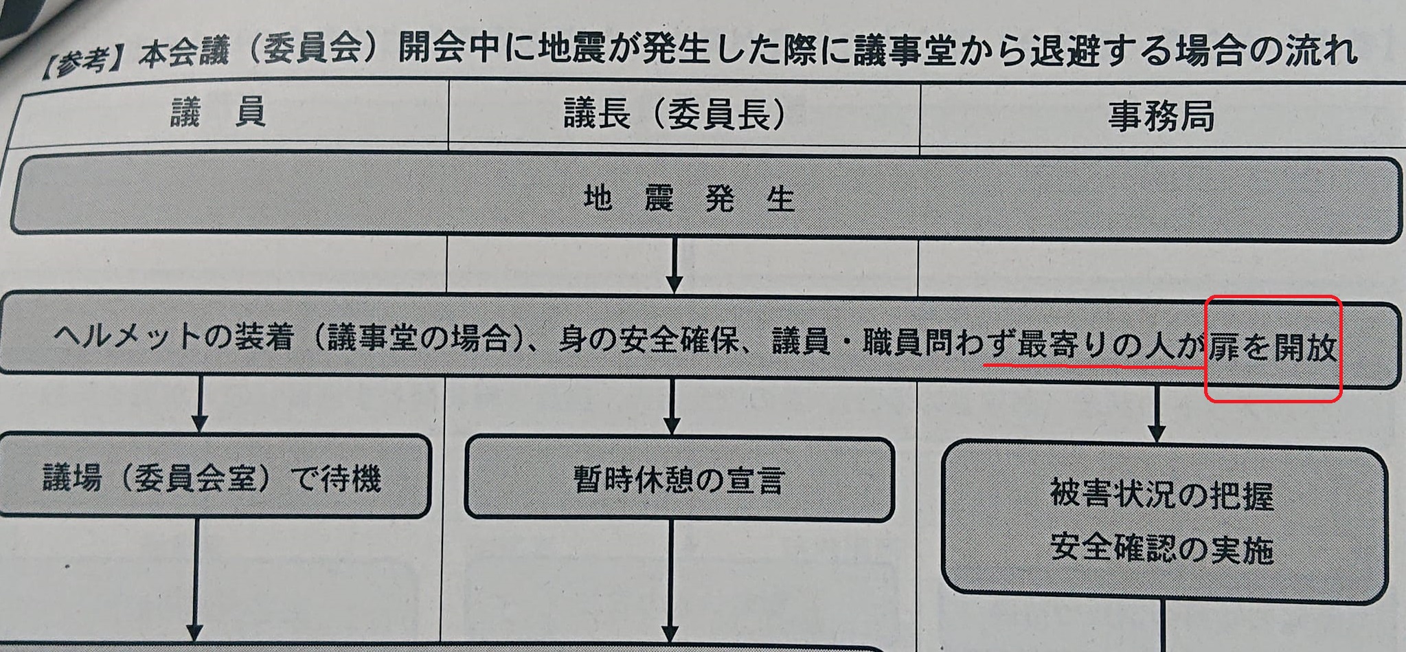 (⇩蛇足ですが、本会議場の扉は職員のほうが近いのですが「職員・議員を問わず」と私から申しました)
