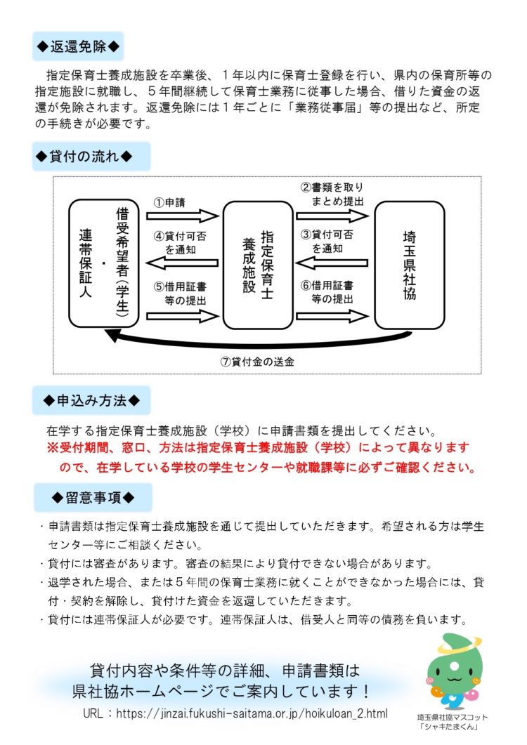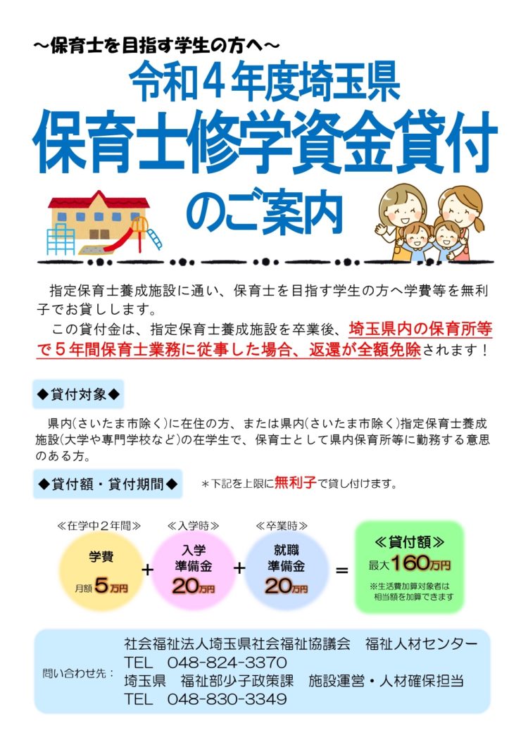 保育士修学資金貸付-社会福祉法人 埼玉県社会福祉協議会 埼玉県福祉人材センター