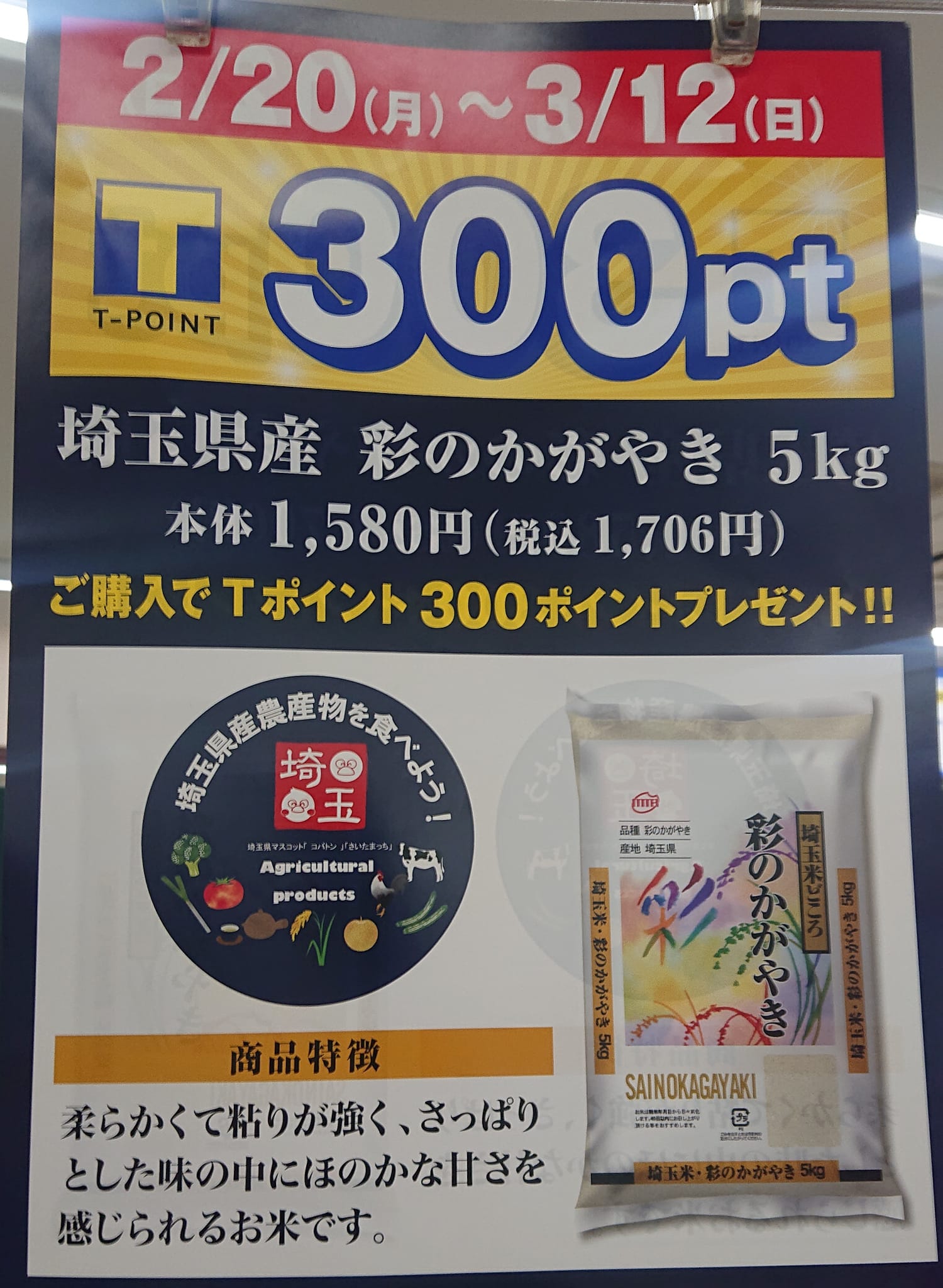 いよいよ明日12日(日)まで『県産米 2割ポイント還元・増量』キャンペーン。お買い忘れ無く。