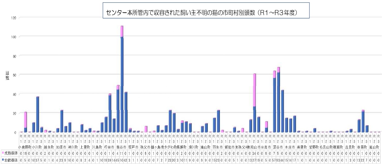 埼玉県内 🐱育てられなくなり収容されたネコの数『市町村別』