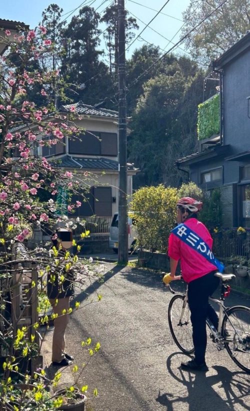 選挙カーに乗らず、🚴自転車な理由は、選挙カーは『上から目線』な感じがするからです。投票に行って頂くのをお願いする立場なのに。