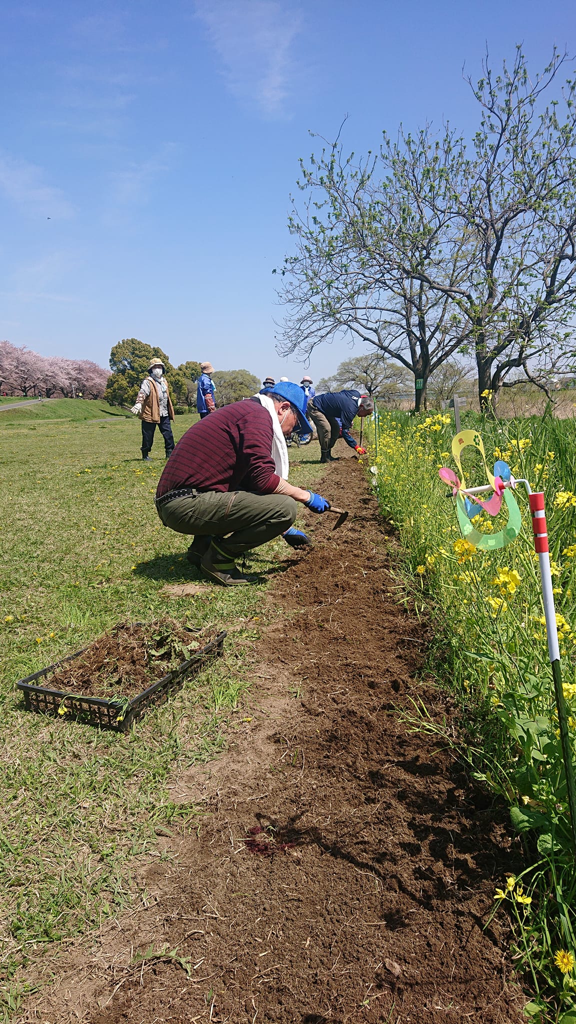認知症への理解を進める為、この後、オレンジ色の花を植える準備。