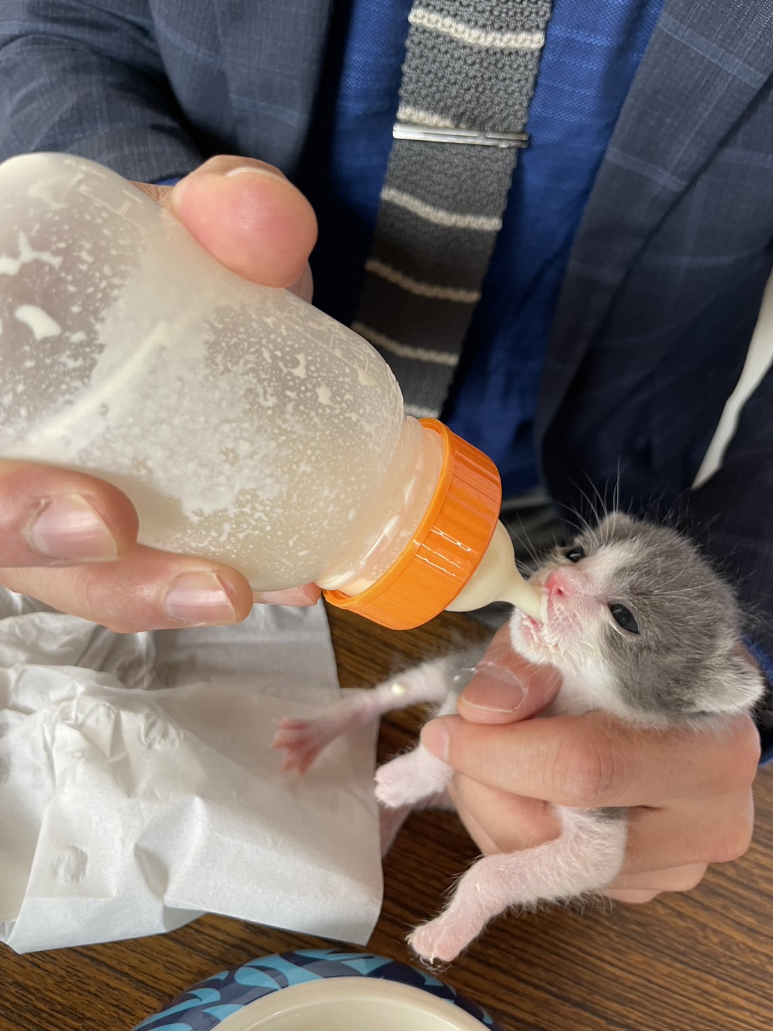 事務所に戻ったら、すぐに😸授乳していました。