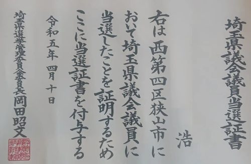 私は結婚して名字が『中川』ではありません。選挙の当選証書は、なぜか本名での表記になっているので、男性より女性のほうが困るのではないでしょうか?
