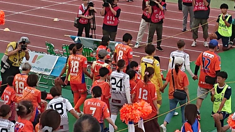 ️試合終了後、(川澄選手など)⚽アルビレックス全選手とサポーターとのハイタッチ✋。長い列が出来てました。スタッフの方に聴いたら「選手との距離を縮める為、毎回行っています」との事。素晴らし~️。さすが新潟❗と思うシーンは試合会場の随所にありました。#アルビレックス新潟