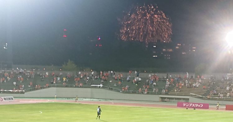 試合観戦中、他の場所での花火が見れました。なんと偶然。(^O^)