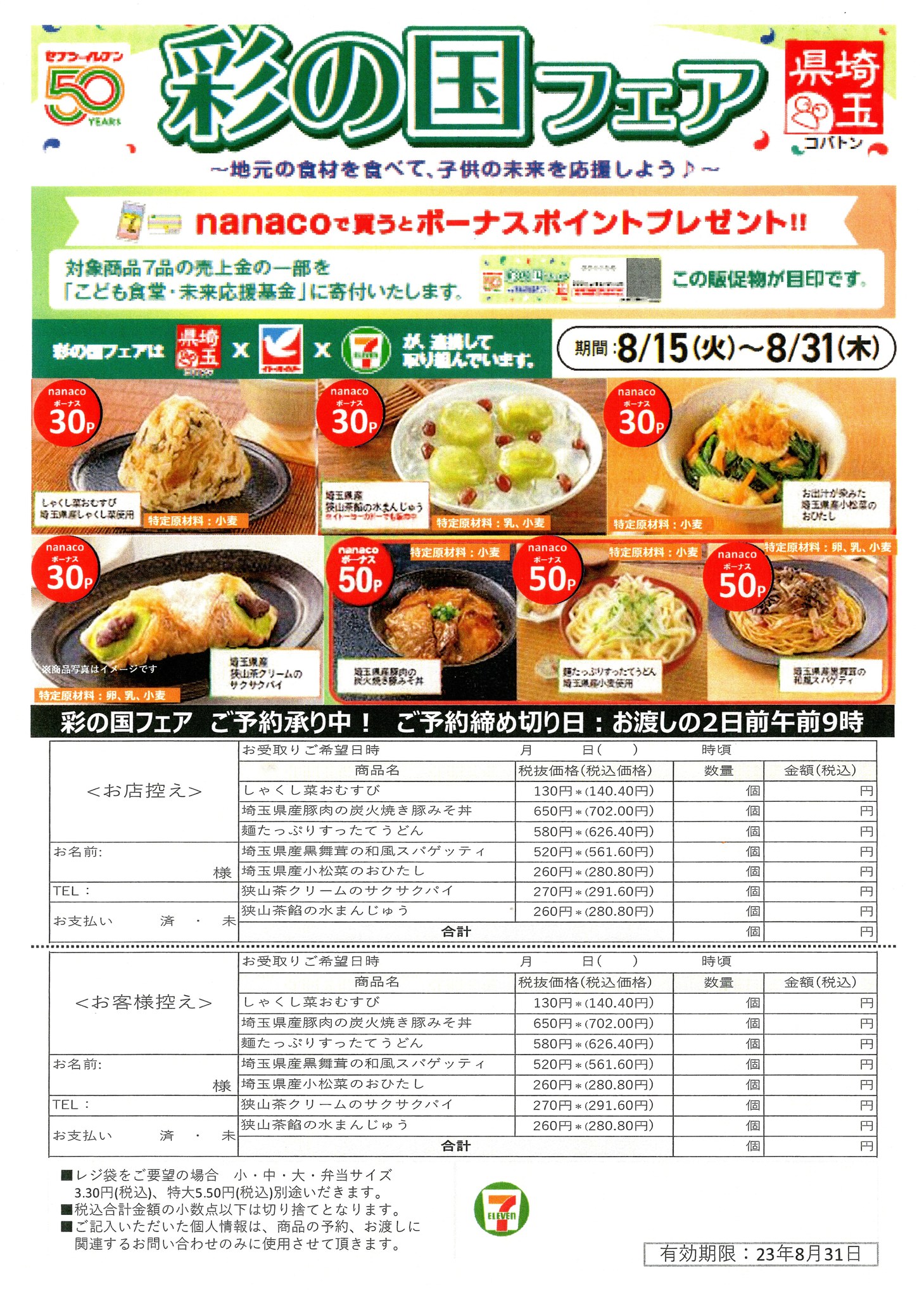 『彩の国フェア』県内🏪セブンイレブン1234店舗で31日まで。7品。