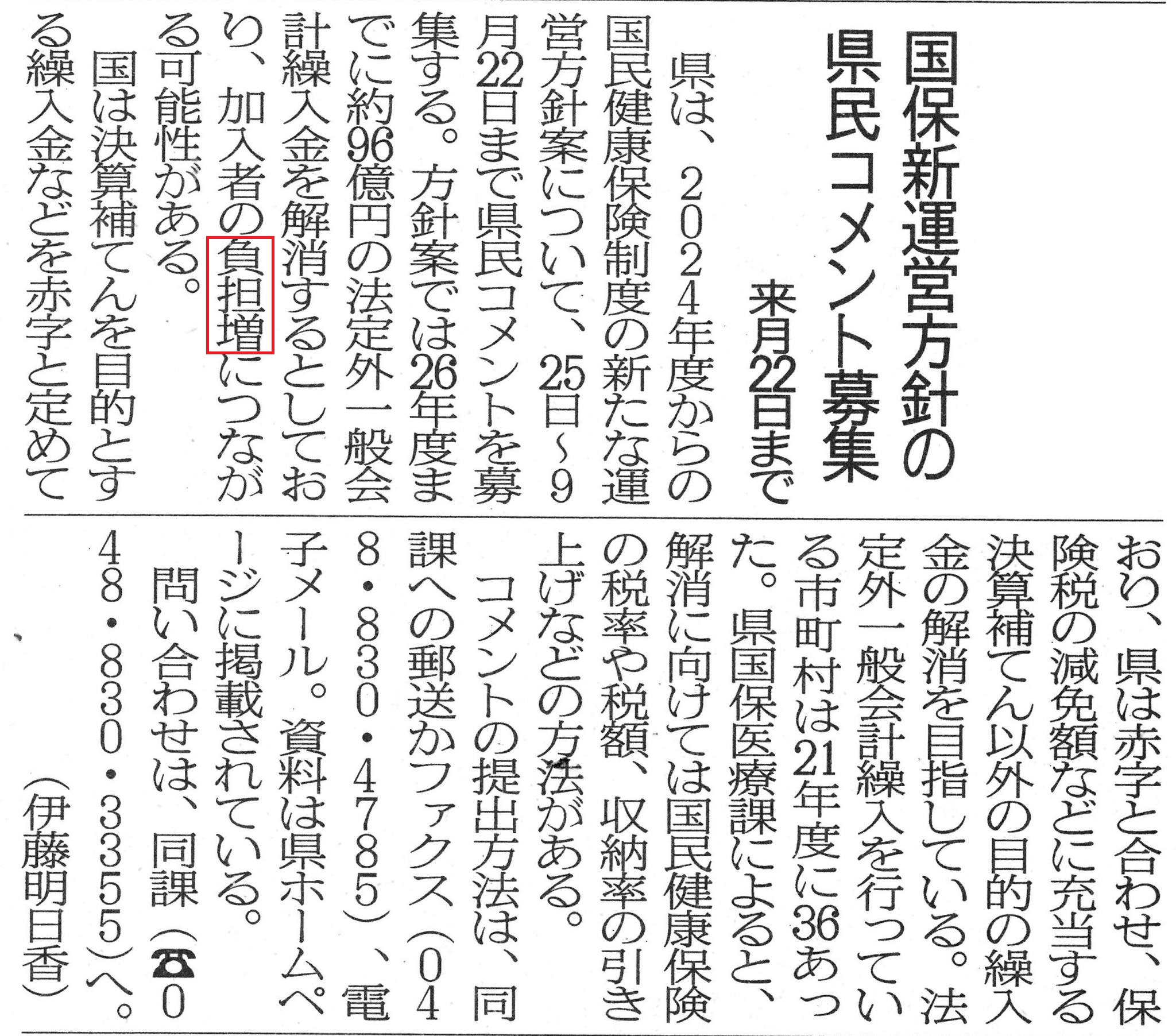 国民健康保険の県方針 県民コメント募集ページ⇩