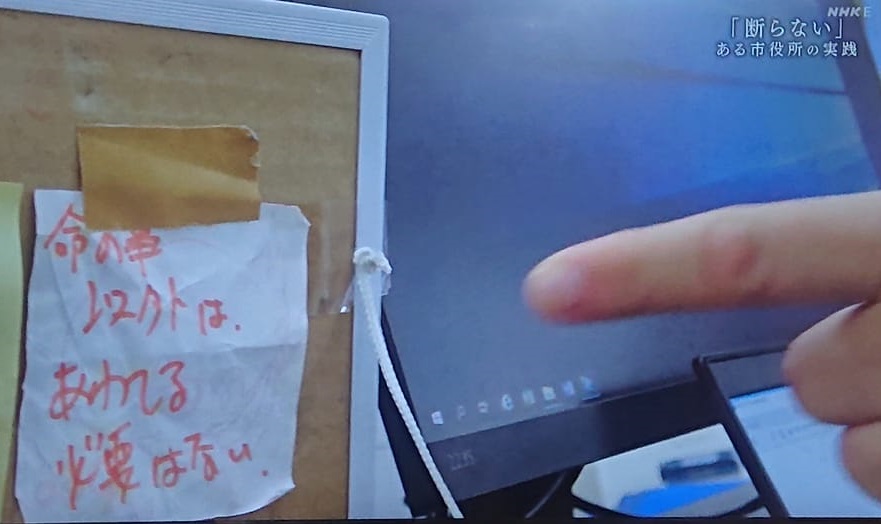 担当職員のデスクには「命の事以外、あわてる必要は無い」と掲げられている。埼玉県庁は掲示するかな?自らの意志で。