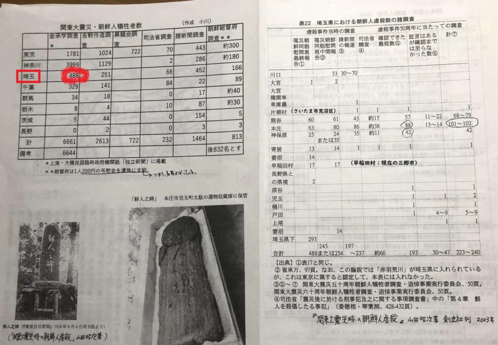 📷埼玉県内で488人が虐殺。しかし、分かっているだけでという注釈が付く。 (📷小川満さんの講演資料)
