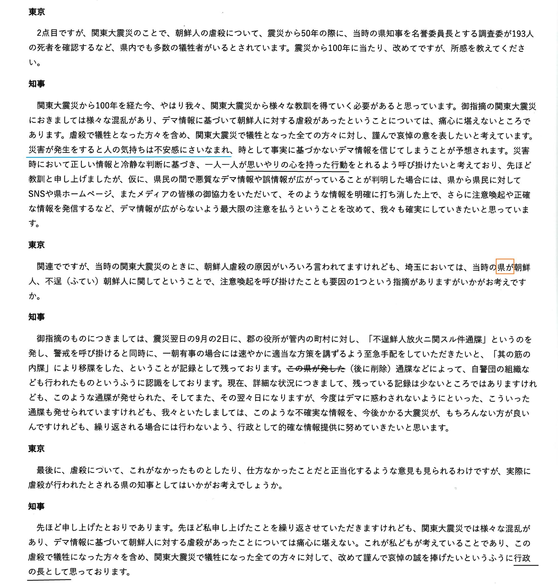 東京新聞の記者が質問するまでもなく、県庁として関東大震災から100年の節目において発信してもらいたかった。県自らの発信となると具体的な事が一切消される(後述)。
