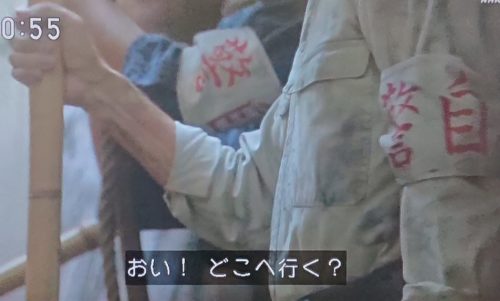 セリフ「武器庫に押し入り、『自警団』とか言い出しやがって、勝手に関所作り始めて『略奪から守る』なんて題目で、警官や軍人も出動して、拳銃と刃物振り回してる。まるで戦場です。もうめちゃくちゃなんだよ!人間がおかしくなってんだ!」。 (事務所スタッフが教えてくれました)