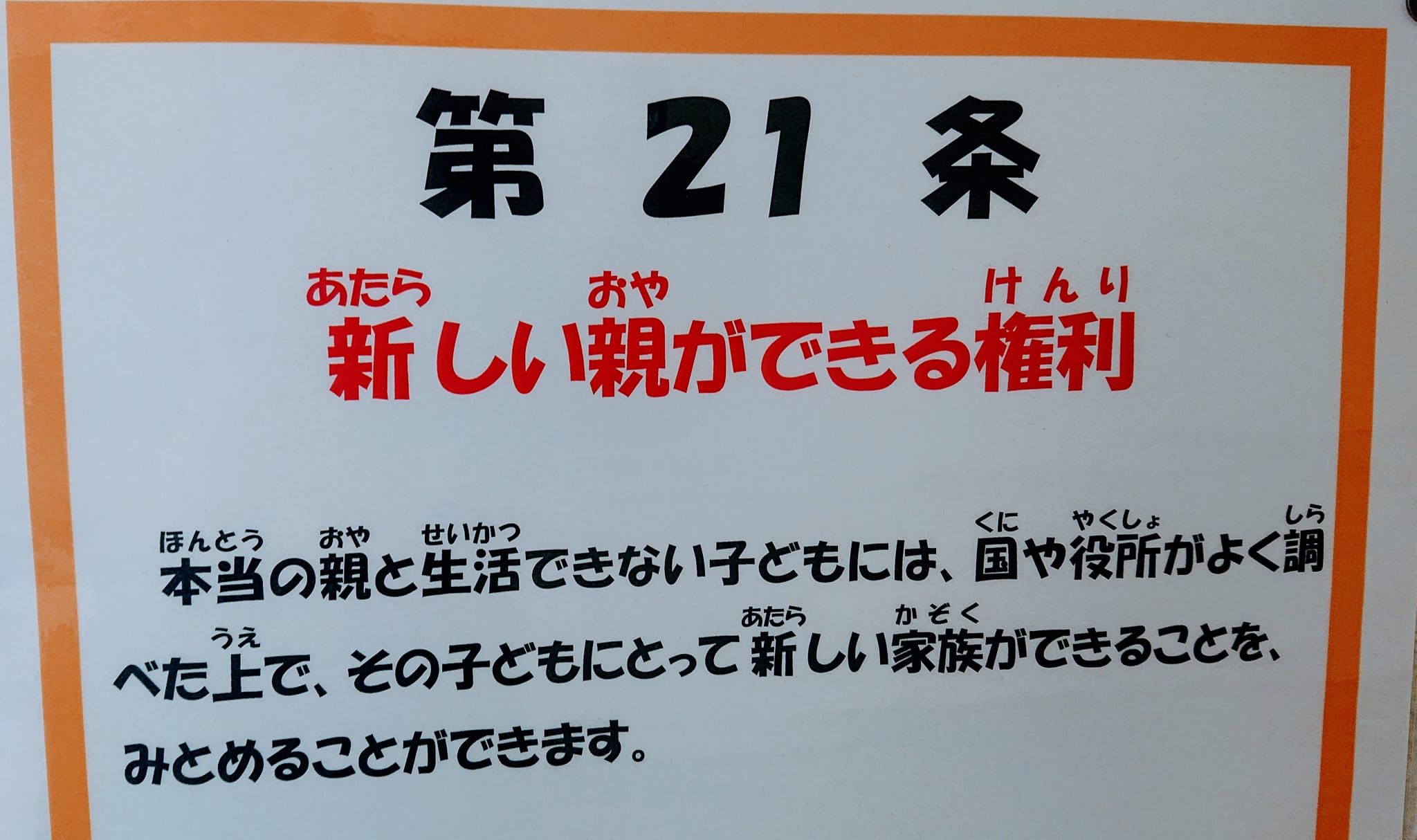 ㉑里親・養子縁組で『新しい親』を得る権利。㉘保護施設では教員OBが2人しか居ない状態で、教育ボランティアさんも導入する考えが無い。㉗長期間、保護施設から出られないのは、ファミリーホームなど施設整備が不充分だから。