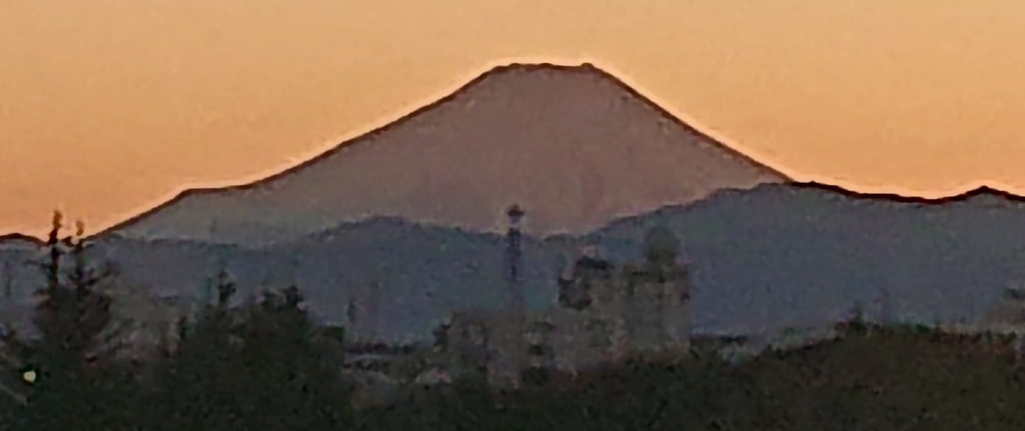 富士山自体がうっすら赤く。