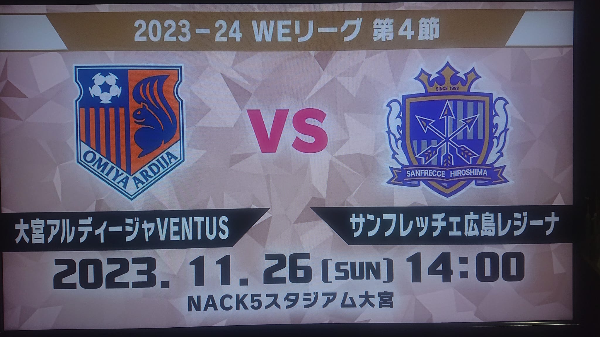 あさって(日)は、何と言っても、元日本代表 鮫島選手の大宮アルディージャ対、日本代表 上野真実・中嶋淑乃選手のいるサンフレッチェ広島との対決。大宮は現在1位と勝ち点で並び、連勝中。✌