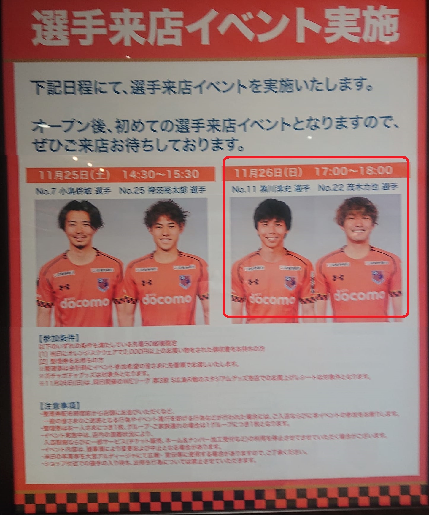 ⚽大宮アルディージャ  明日(日)の試合が終わった帰りに、スタジアムからほど近い、大宮駅へ歩いて向かう途中のショップに寄れば、選手に会えちゃうかも。今日、開店初の選手イベント、やってました。(^O^)v