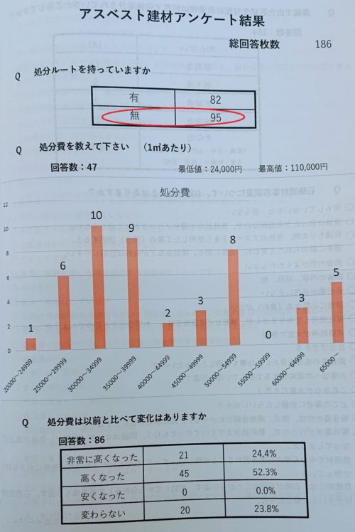 「アスベスト(中皮腫)は死ぬまで、口にハンカチをあてられているように、呼吸が苦しい」建築の労働組合員の方からそのように指摘頂くと共に、写真⇩のように「日本の対応が、ずさん過ぎる事は、一目瞭然」との事。