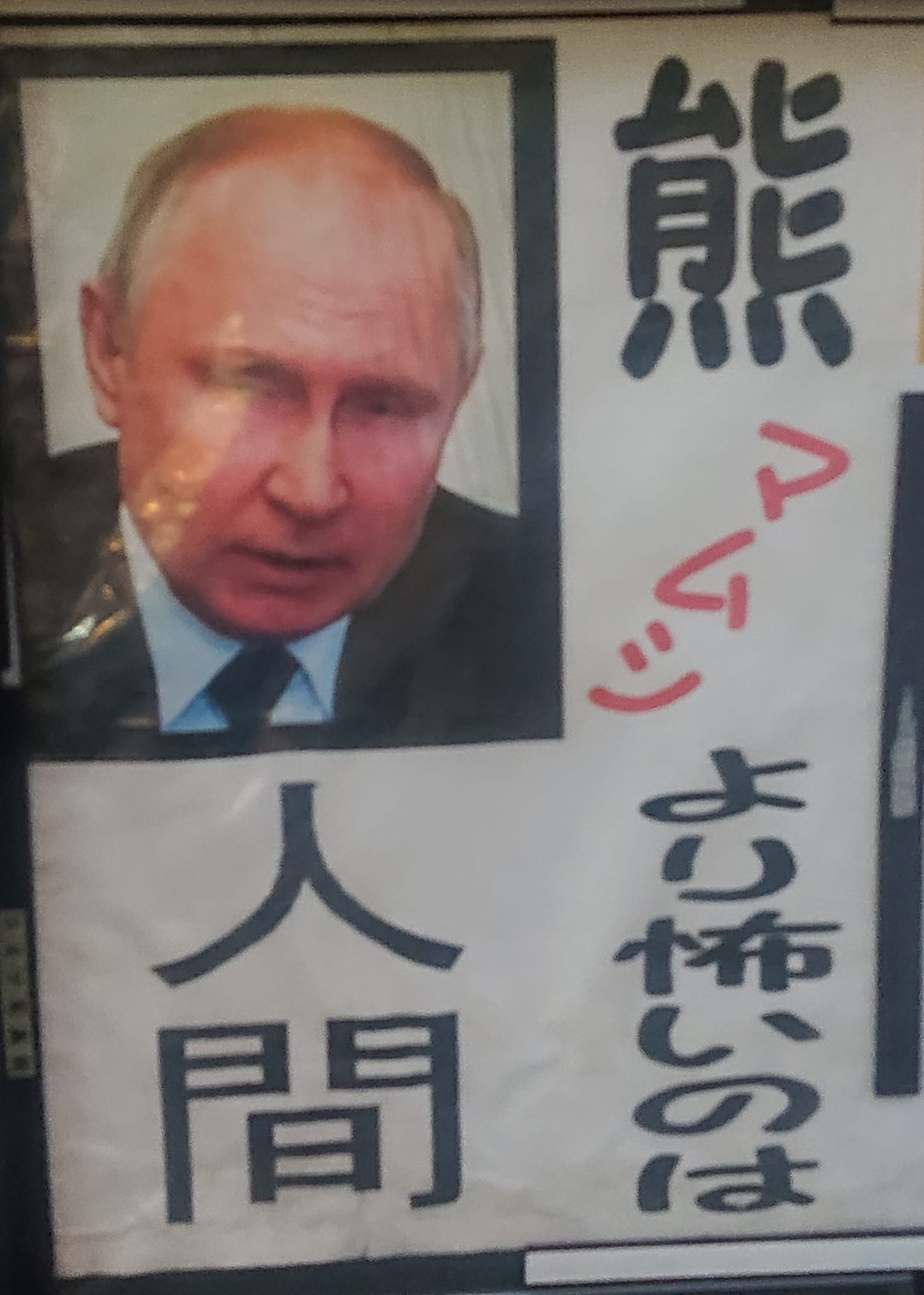 📷️『Humans are scarier than Bear・Viper.(熊・マムシより怖いのは人間)』と書かれた秩父市内の掲示。