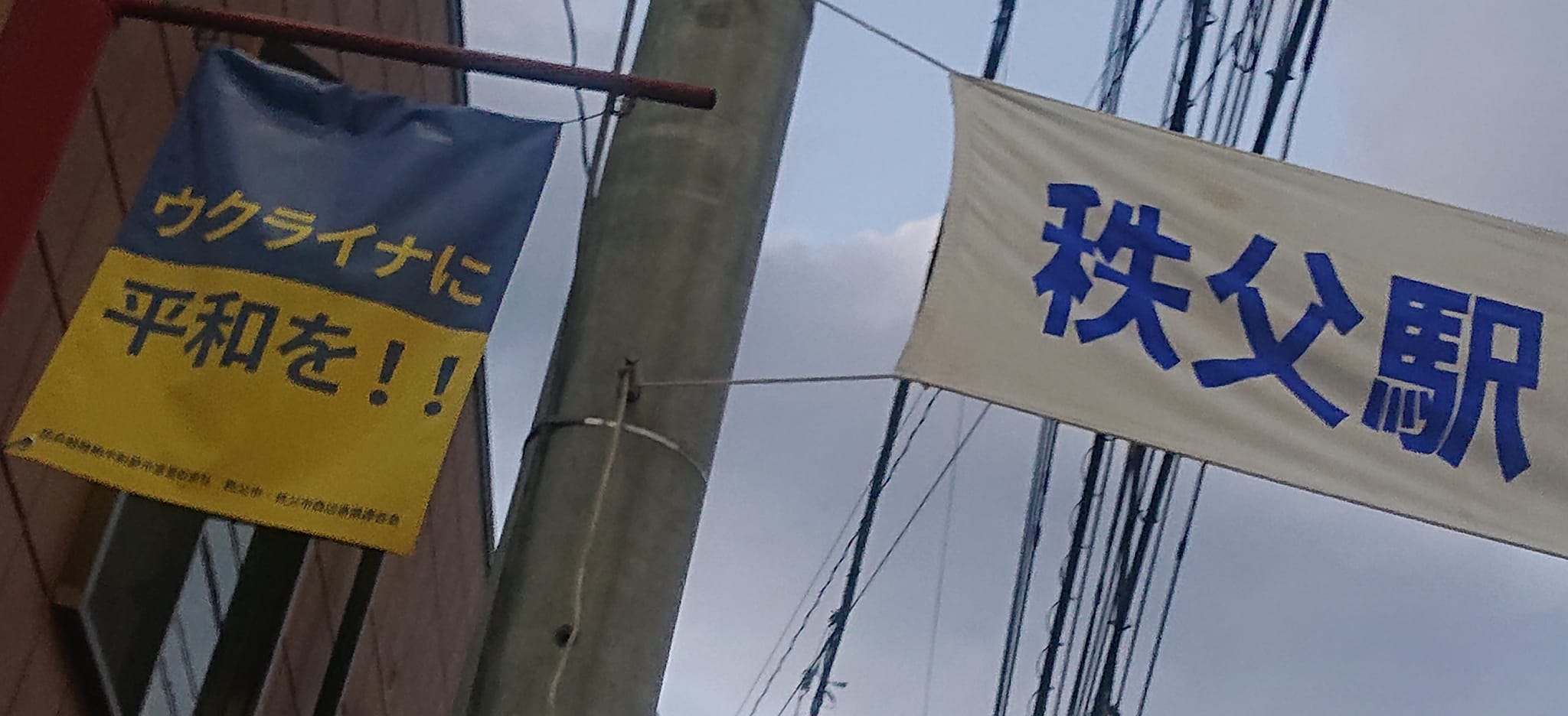 ウクライナの旗を沢山掲げ、応援している。もちろん、私達狭山市民も👍(募金、事務所で継続中)。
