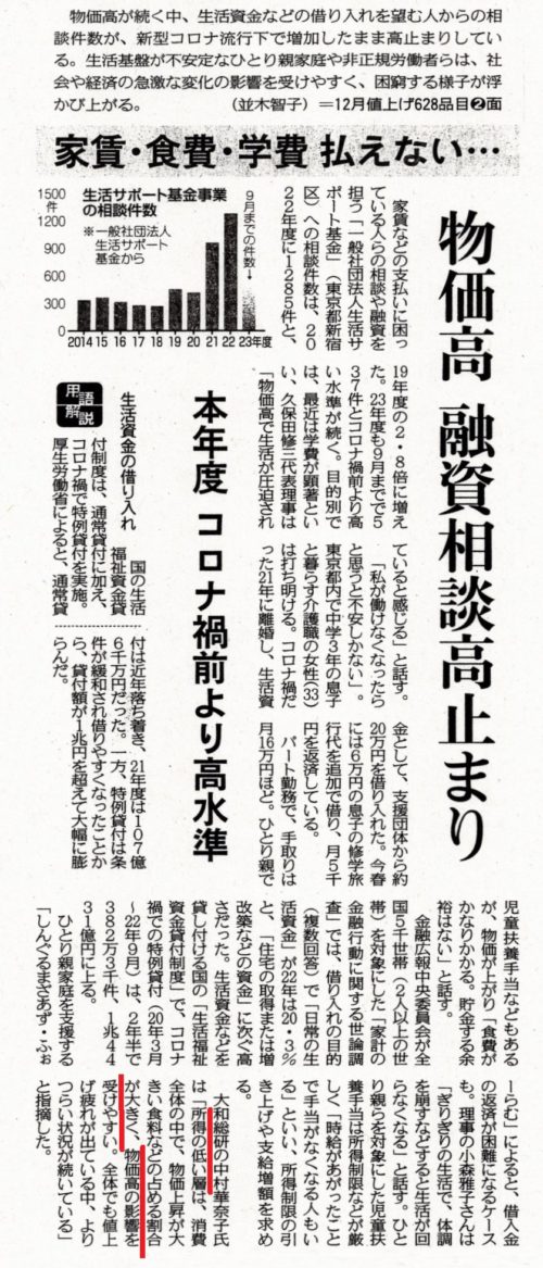 (県議会でも与党から『物価高』対策の質問が今日ありました。📷11月28日東京新聞)