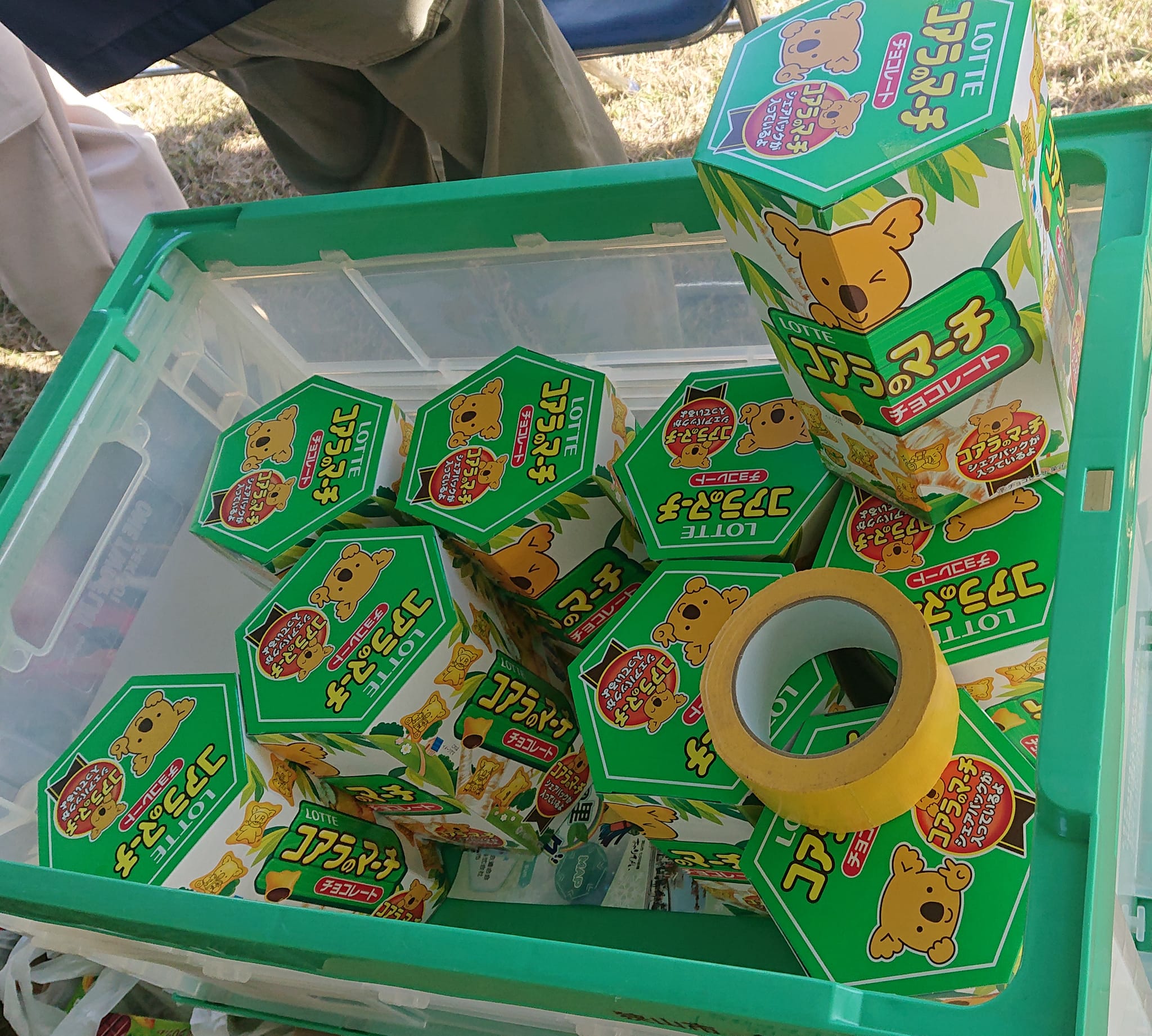 【非売品❗】超デカ😮『🐨コアラのマーチ』をロッテ狭山工場さんが御提供下さったとの事で、子ども達はじめ当然大喜びですが、持って帰るママさん、ちと大荷物(^O^)/。たまたま通りかかった市民がうらやましがってました。(普段ぜひロッテのお菓子ご購入を☺️)