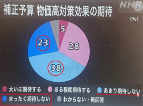 『物価高対策に期待できない61%』(「あまり期待…」も含め)と国営放送(NHK)の調査でも、この状況⇩。ホントはほとんどの国民が期待”したい”のに。”今後”も含め『こんな世の中』で。政治・行政の堕落により、日本は衰退に向かっている中、⇩これをもとに県庁と『物価高』対策について打合せしています。後ほど具体的にお伝えします。