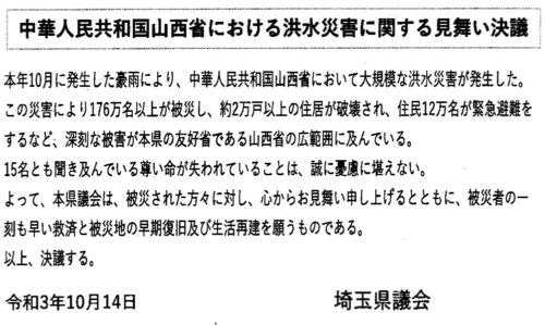 埼玉県議会からのお見舞い