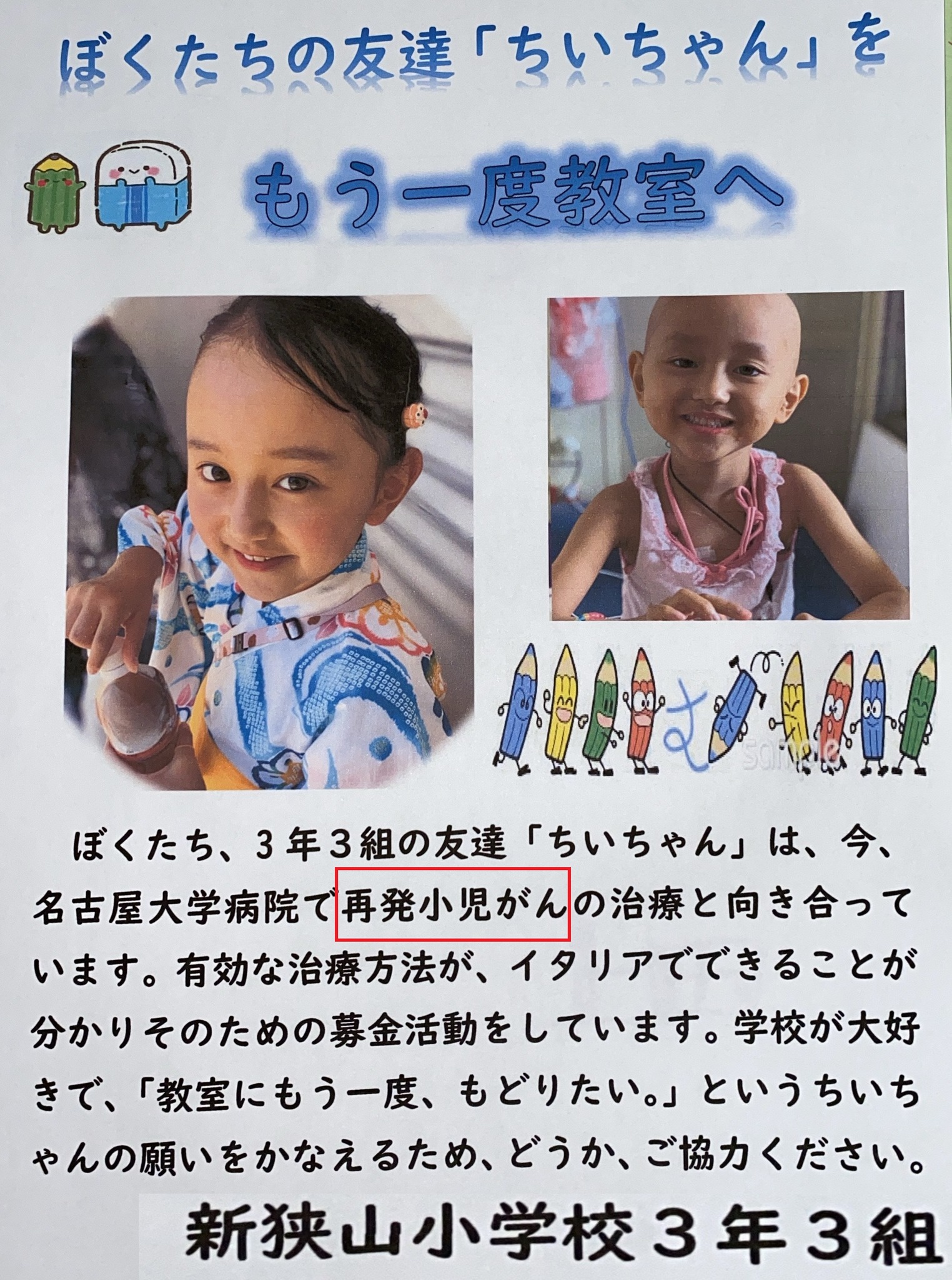 狭山の小学生👧ちーちゃんのクラウドファンディング 『目標額に達した』ようです。取り急ぎ報告申し上げます。