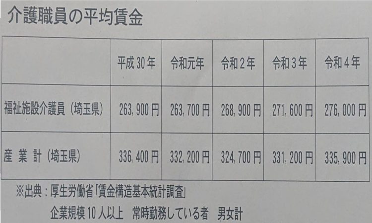 介護職とそれ以外の仕事 月5万9900円の格差 埼玉県
