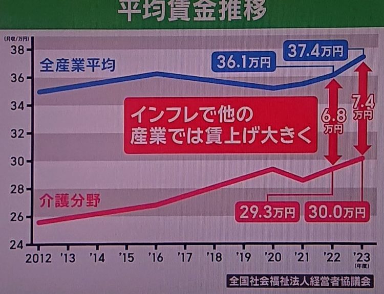 東京都では来年度、介護職員の家賃補助を行うそうですが、地域間で『介護職員の中で取り合っている』レベルではもうないですよね(自治体の努力は必要ですが)。