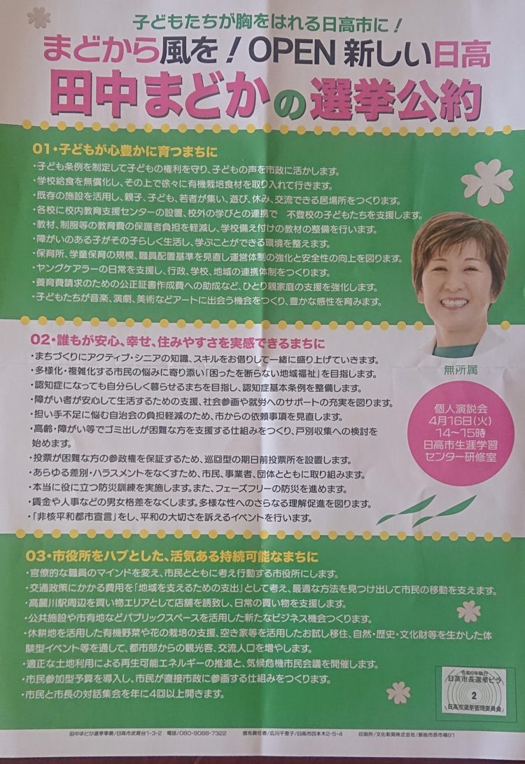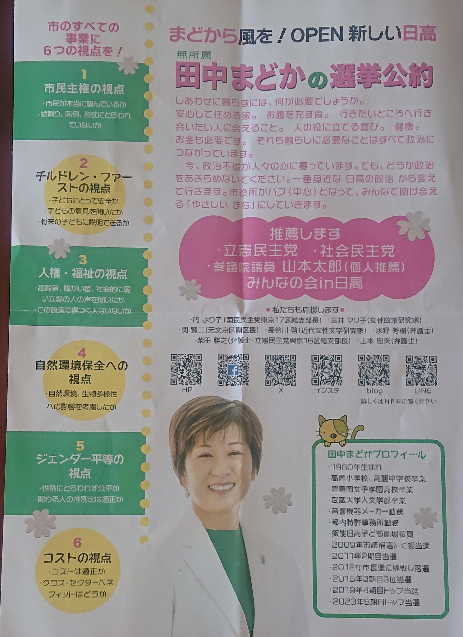 日高市長候補 田中まどかさんの演説🎥映像⇩ 私は応援で「今回の市長選挙で、『地域交通』政策が争点の1つになっています。日高市にある埼玉医大国際医療センターに、お隣の狭山市からも車が無ければ通院するのは困難なので、田中まどかさんに市長になって頂いて、日高・狭山市が連携して取り組めたら」とお話させて頂きました。