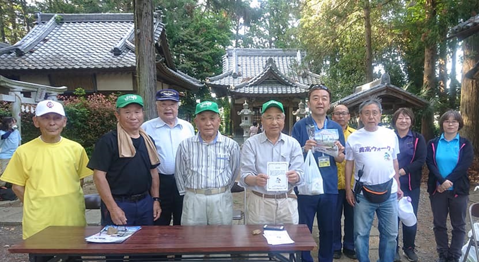 義高ウオークのゴール地点で、嵐山町民の8人の方が飲み物を提供して下さったり、『完歩証』を参加者に渡して下さったり、ありがたい触れ合いです。嵐山町は東上線・狭山市は西武線なので生活圏が普段は違い、こういう機会が無いと触れ合う事が出来ませんね。