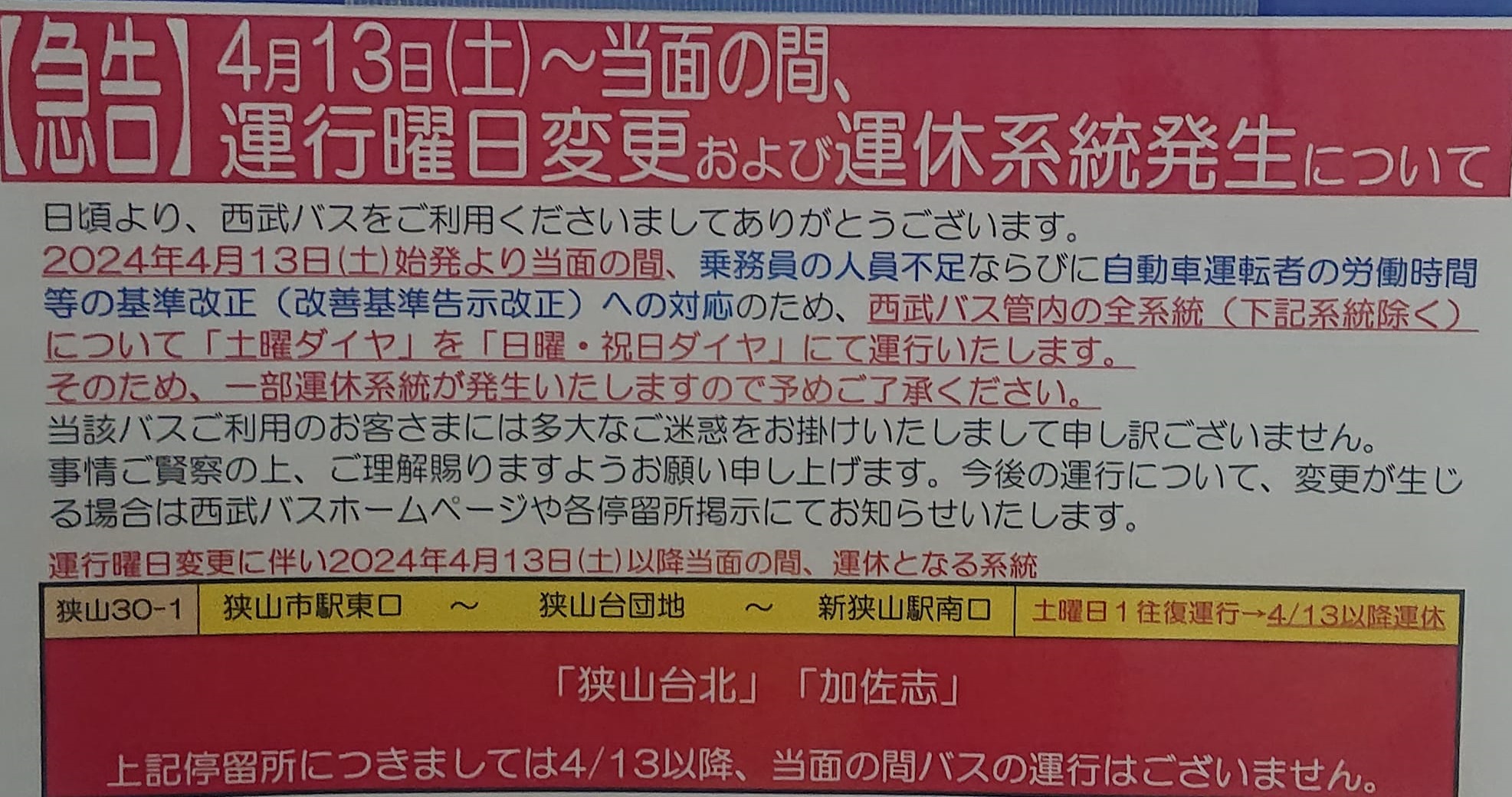 🚌西武バスの新型は、一部のイスが開閉式なんですね。今日も通院する市民の方が「土曜日のバスが無くなって困っている」と伺いました。お金持ちの方も、忙しい方も、たまには🚌バスを御利用下さい。