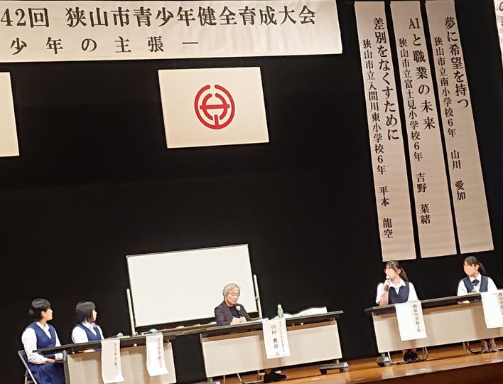 「特別支援学級で、皆さん(登壇している中学生4人)と同じように進学できますか?」「エッセンシャルワーカーで、ゴミを回収する仕事をどう思いますか?」「『君達はどう生きるか?』は今の時代は多様なので『君はどう生きるか?』。この国はいつまでも子供扱いする」パネルディスカッションでファシリテーターから投げ掛けられた言葉を、必死に中学生が聴き、『自己肯定感-自分と比べてどうか』についてなど中学生が発言していました。今日の演題は『今どきの中学生って、どうよ』。