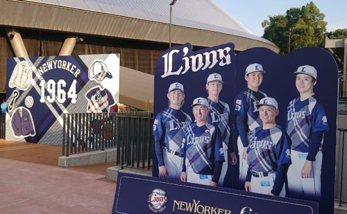 ⚾西武ドーム店内でユニフォームを写真に撮る事は可能ですが、ネットに載せるのはNG。New Yorkerのグッズは、ユニフォームと帽子だけがドーム店内に。後はネット販売。しばらくは販売していると言っていました。