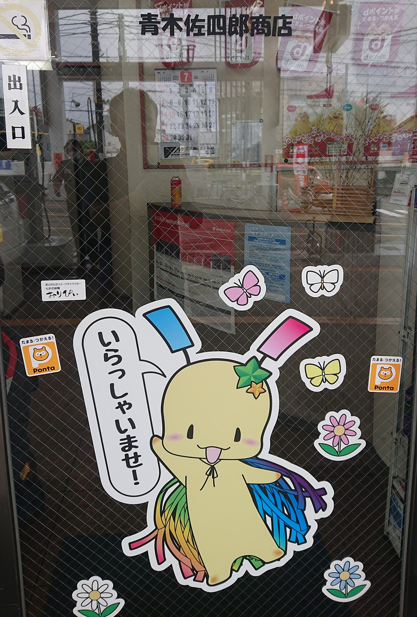 狭山市のゆるキャラ📷 てっきり市役所などから支給されたステッカーなのかと思ったら、違ってビックリ。ひろし事務所近くの個人経営のガソリンスタンドの扉。