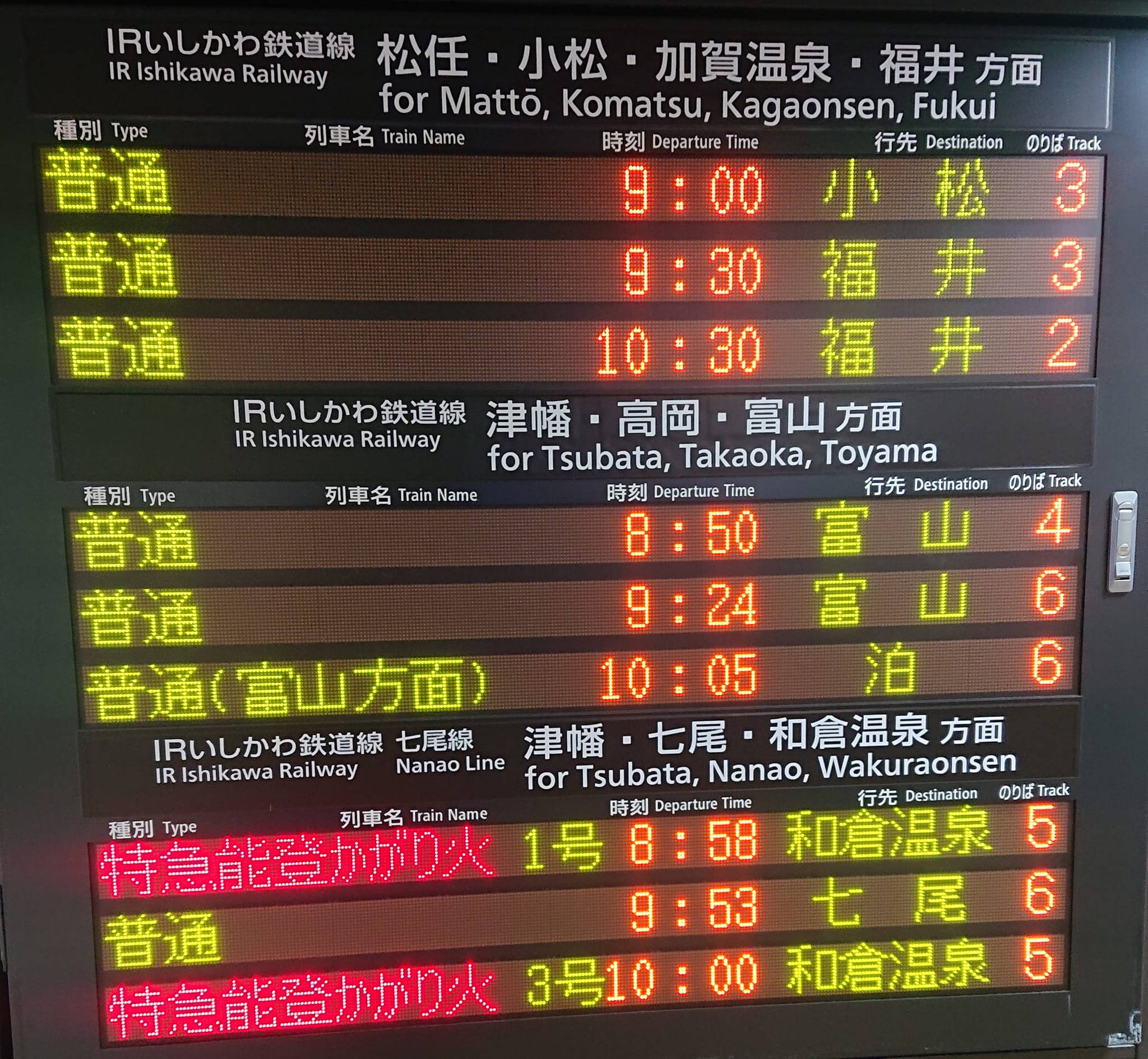 能登の玄関口、金沢へ2時間2分。富山駅を過ぎてから車内を見たら、乗客は5割弱。すいていて(東海道新幹線・飛行機などと比べ)ゆったり行けますよ👍。ホテルも楽に取れたし👍。石川県へ旅行はいかがですか?困った時はお互い様。明日は我が身。
