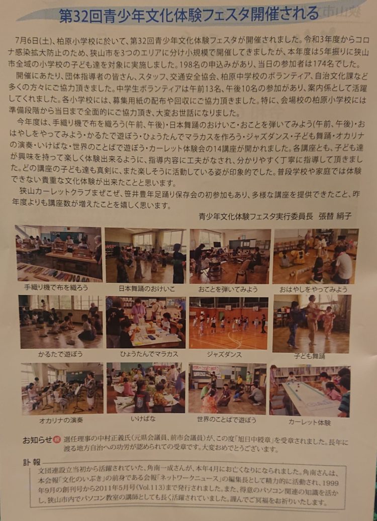 狭山市文化団体連合会 25周年 会創設前から関わり、創設時、副会長・市民芸術祭事務局長を若輩ながら務めさせて頂き、下準備が連日夜中までで大変でしたが、