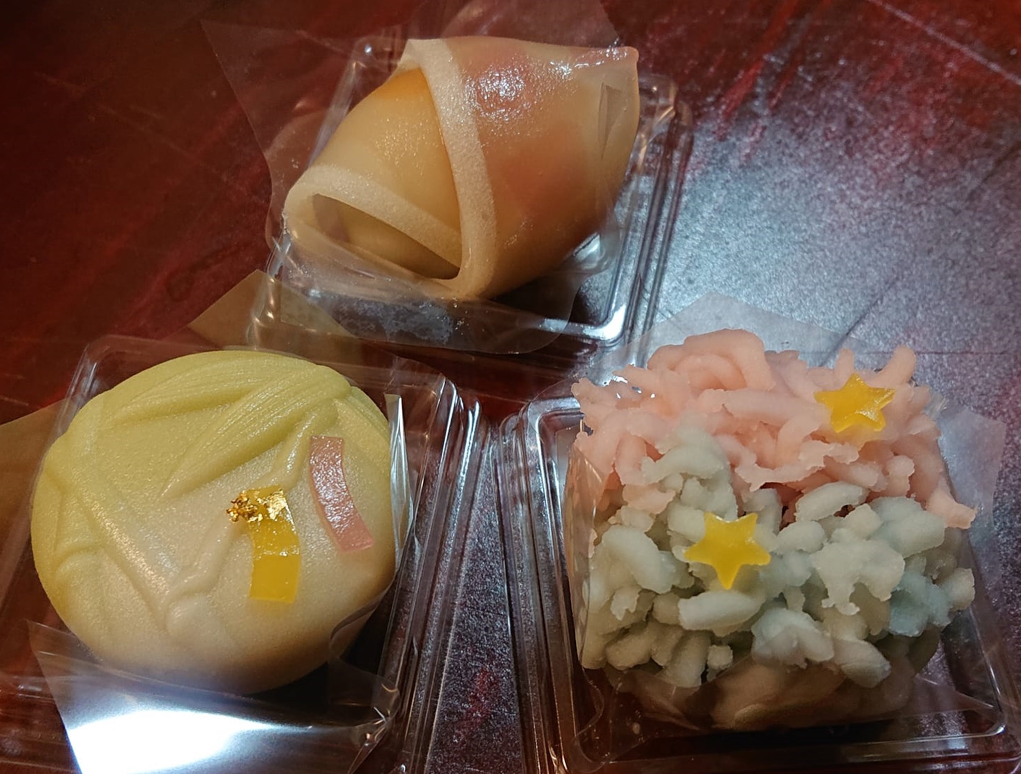 📷①左下『願い笹』短冊も。②右下『天の川』③真ん中『浴衣』 細かな細工。