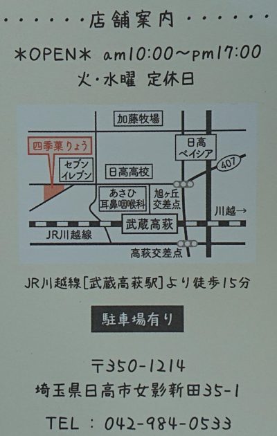 お菓子は全て日高市『四季菓 りょう』