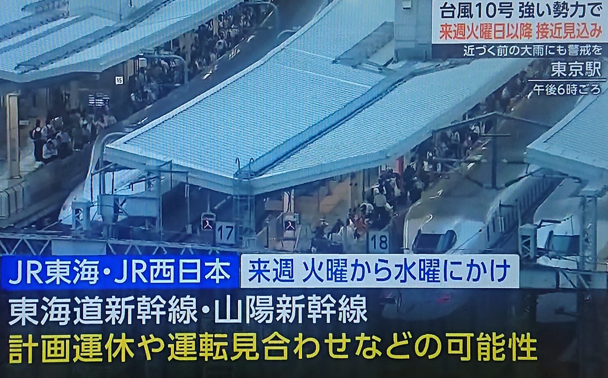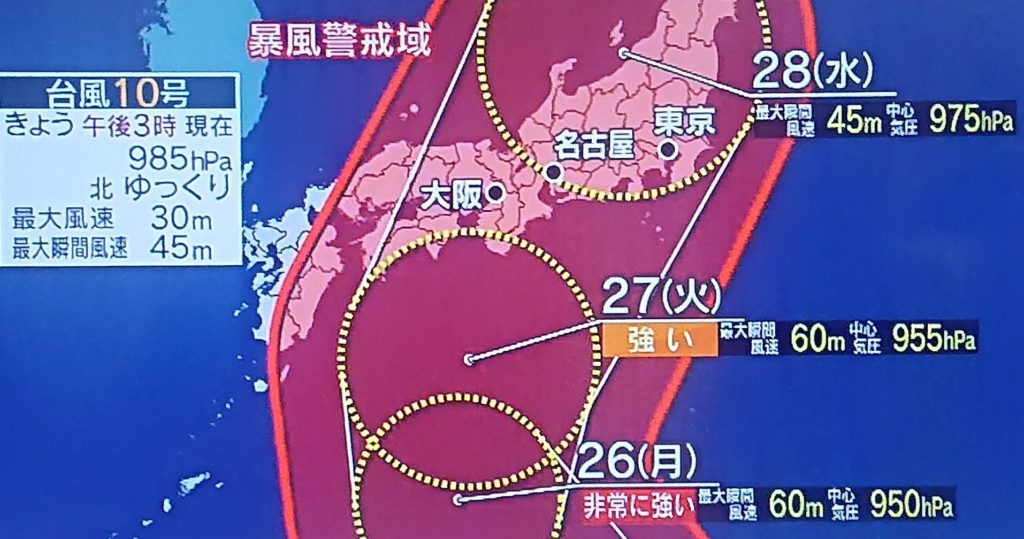 前回、お盆の時の🌀台風も、🚄新幹線の『計画運休』の発表は、早かったですね。台風情報の📺TVを見ていて埼玉県民がいつも気になるのは、小笠原や伊豆諸島の🌊波・風の報道があっても「埼玉県内はどうなる可能性があるのか?」。台風の進路にもよりますが、沿岸部の千葉と、埼玉では違いますよね。そこで・・・(写真は今夜7時NHK)