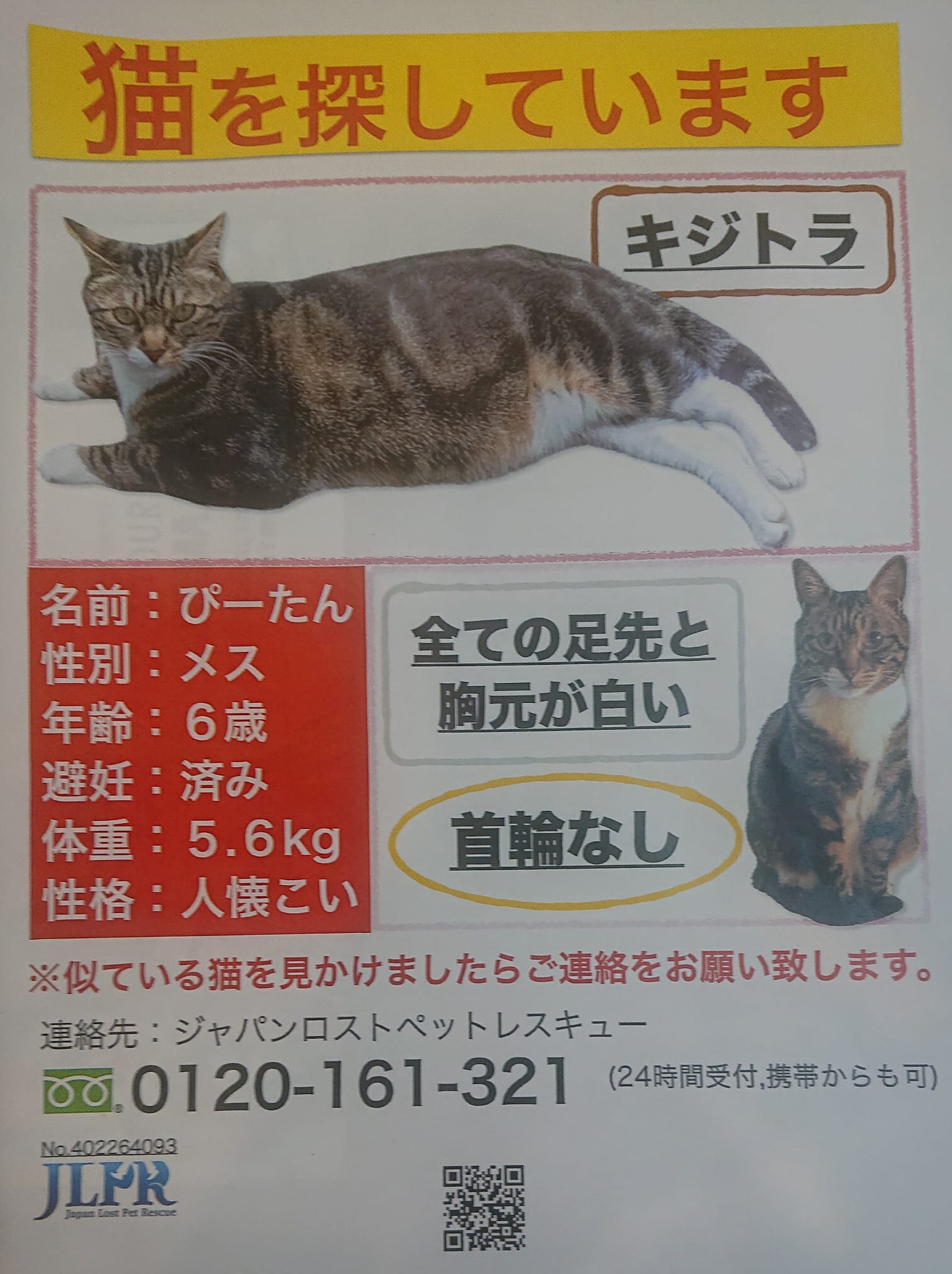 【探しています】ぴーたんちゃん(♀)約6歳ー迷い猫掲示板