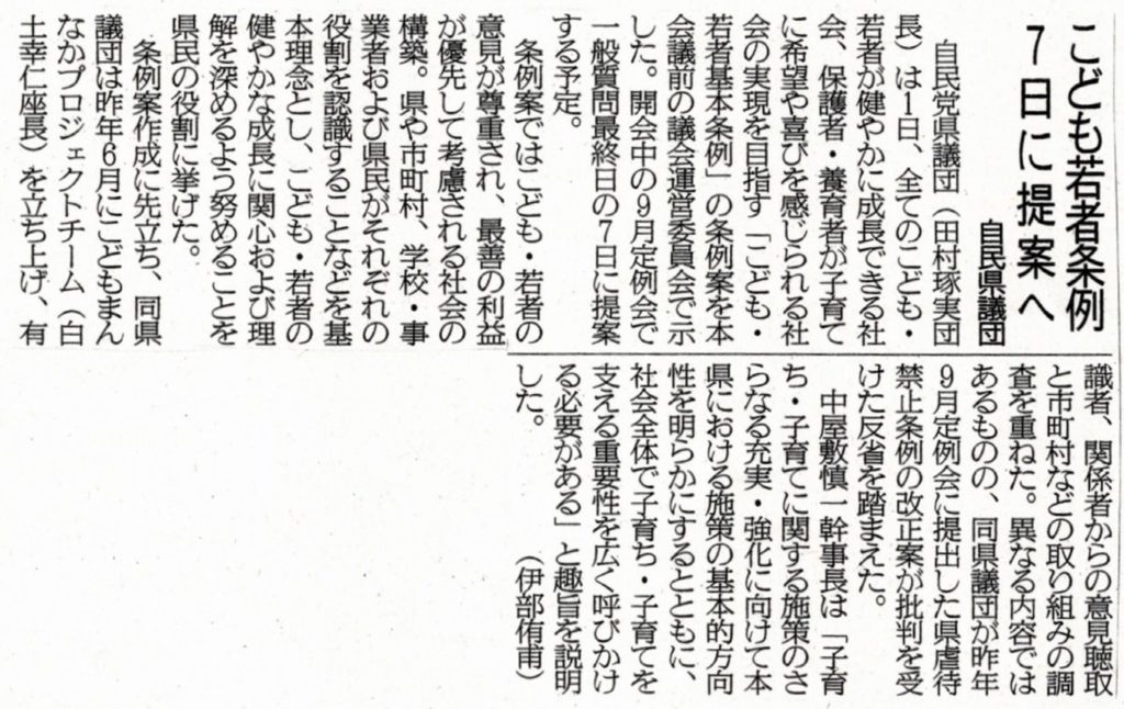 『虐待防止』条例案が県議会で廃案になり、『こども・若者基本条例』案が今日(月)提案され、3時に審議されます。既に複数の市町村議員から意見を頂いております。何かありましたら、ご意見下さい。