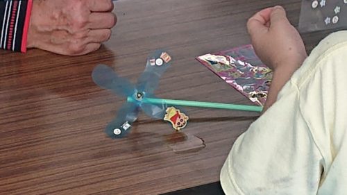 📷写真は民生委員さん達が、子ども達とのふれあいの為の取り組みで、風車を作る体験ブース(他に輪投げ・ボウリングも)。上手に👦子ども達が作っていました。ありがとうございます。